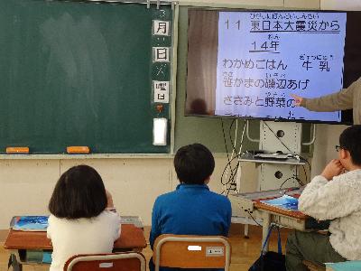 東日本大震災から、14年がたちました。【3月11日(火曜日)】 更新日:2025年03月11日 公開日:2025年03月11日 3年生では、今日の献立に関わらせながら、東日本大震災について担任の先生が話をしました。全体では、教頭先生が東日本大震災について話をして、午後2時46分に黙祷を行いました。大震災を体験していない子どもたちですが、これからも「いのち」の大切さ、「防災」について考える機会を大切にしていきたいと思います。