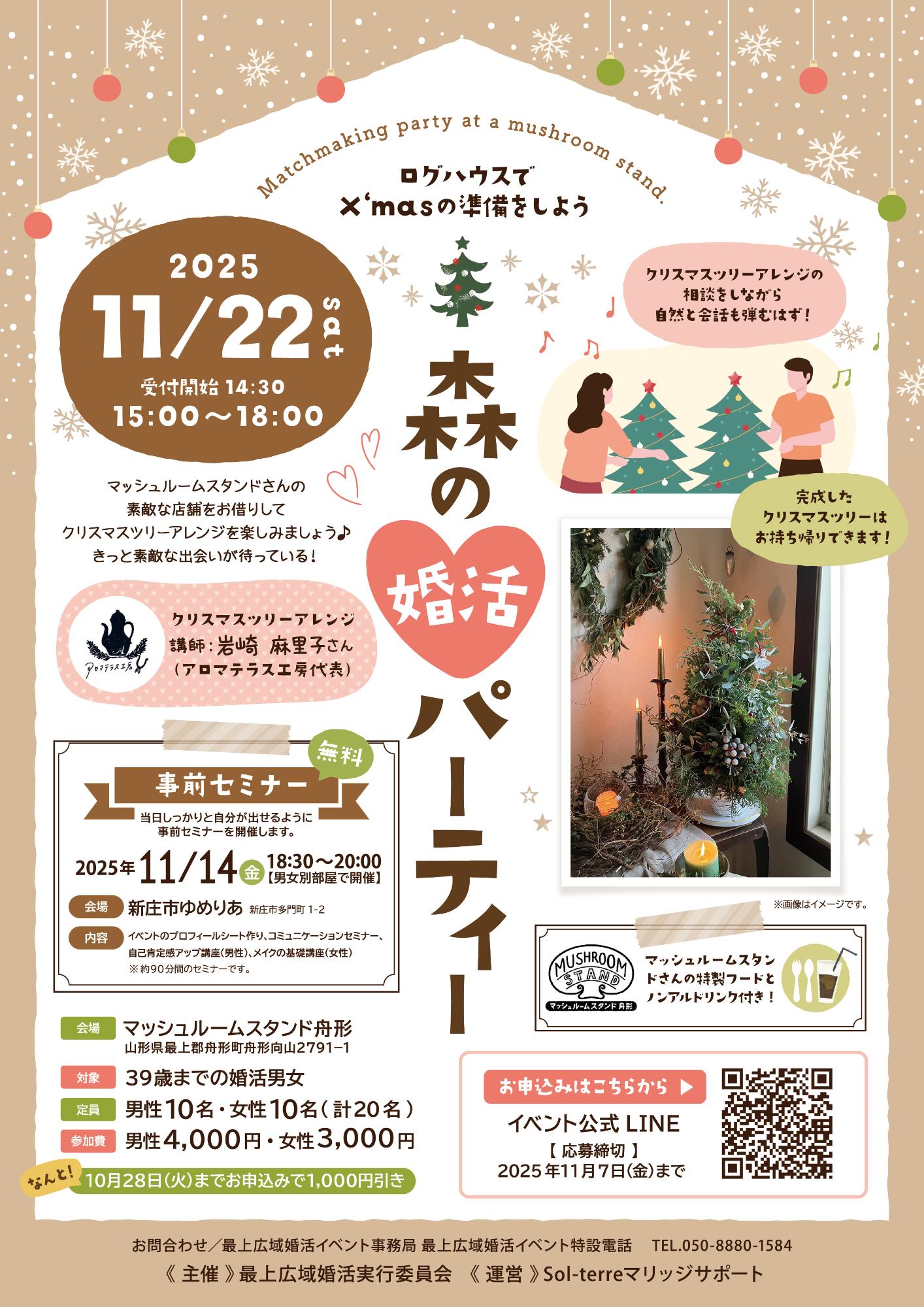 マッシュルームスタンドさんの素敵な店舗をお借りしてクリスマスツリーアレンジを楽しみましょう。きっと素敵な出会いが待っています!