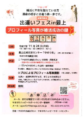 内容 :○やまがた縁結びたいの説明・個別相談(女性の方には女性の縁結びたいが対応いたします。)