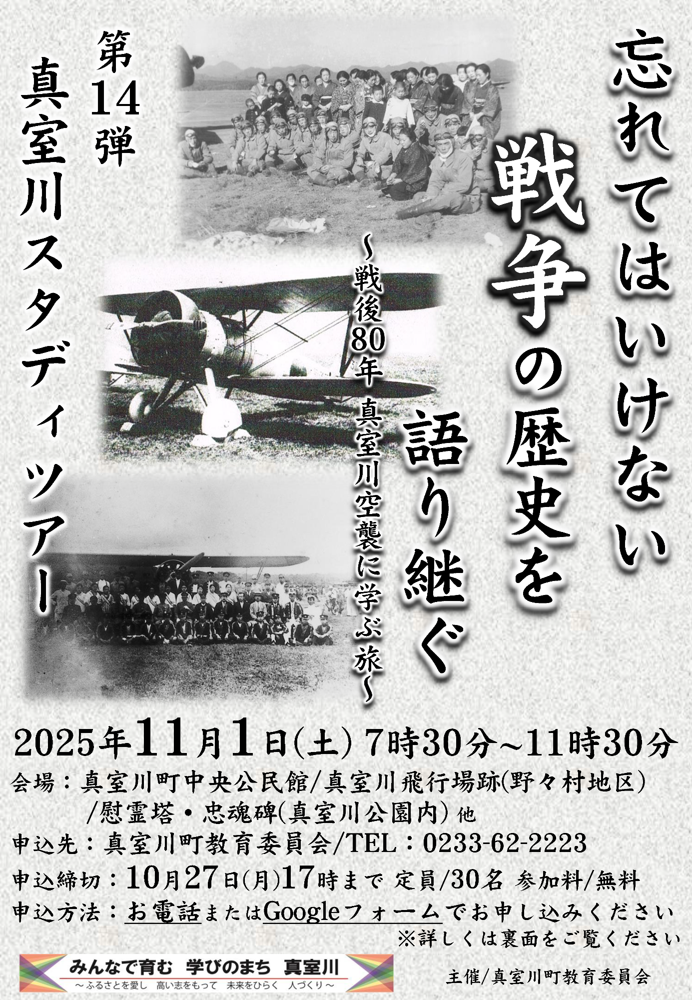 令和7年11月1日(土曜日)に開催した真室川スタディツアー第14弾「忘れてはいけない戦争の歴史を語り継ぐ~戦後80年 真室川空襲に学ぶ旅~」のレポートです。
