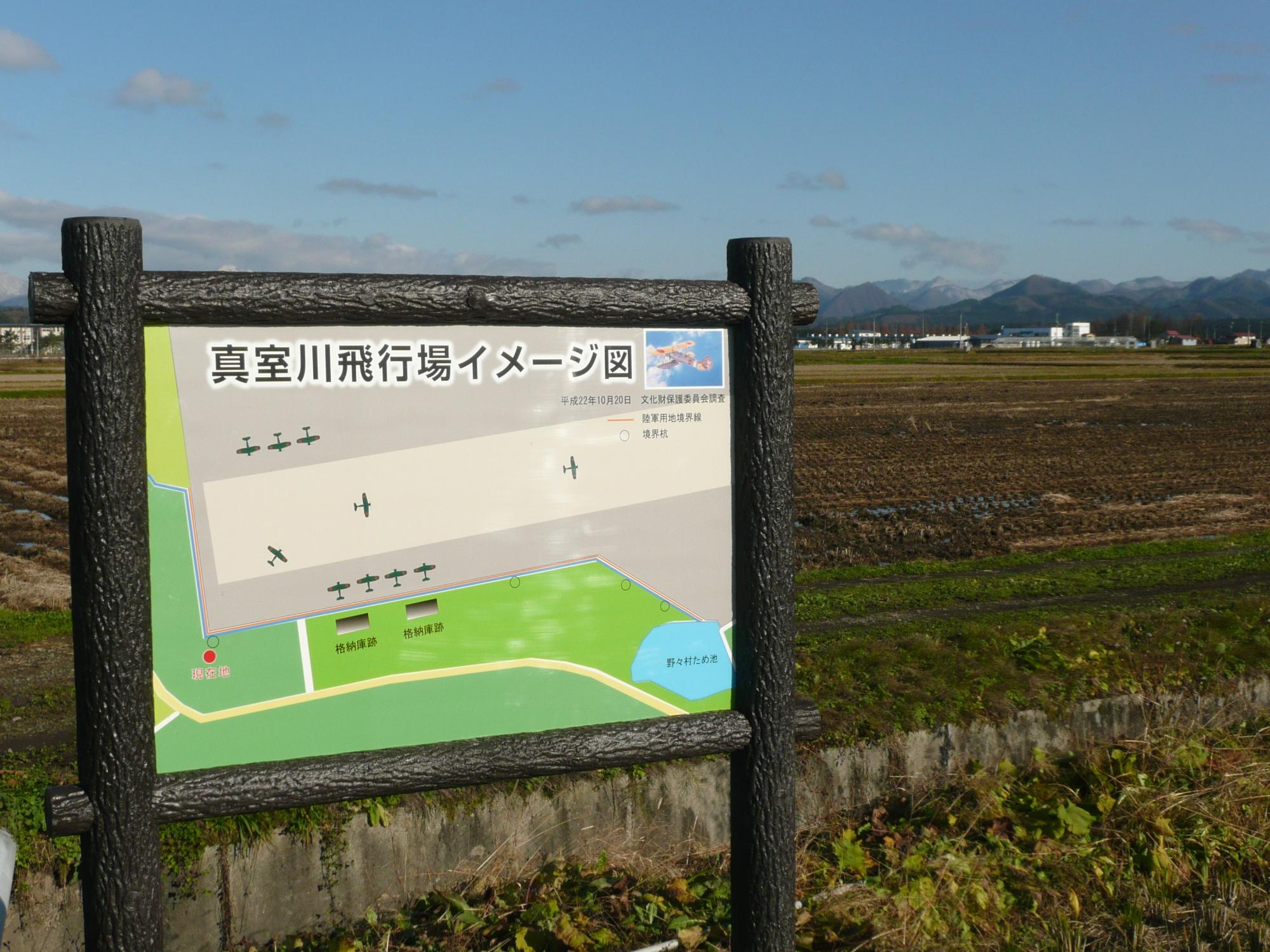 真室川飛行場跡地には飛行場のイメージ図の看板が設置されています。