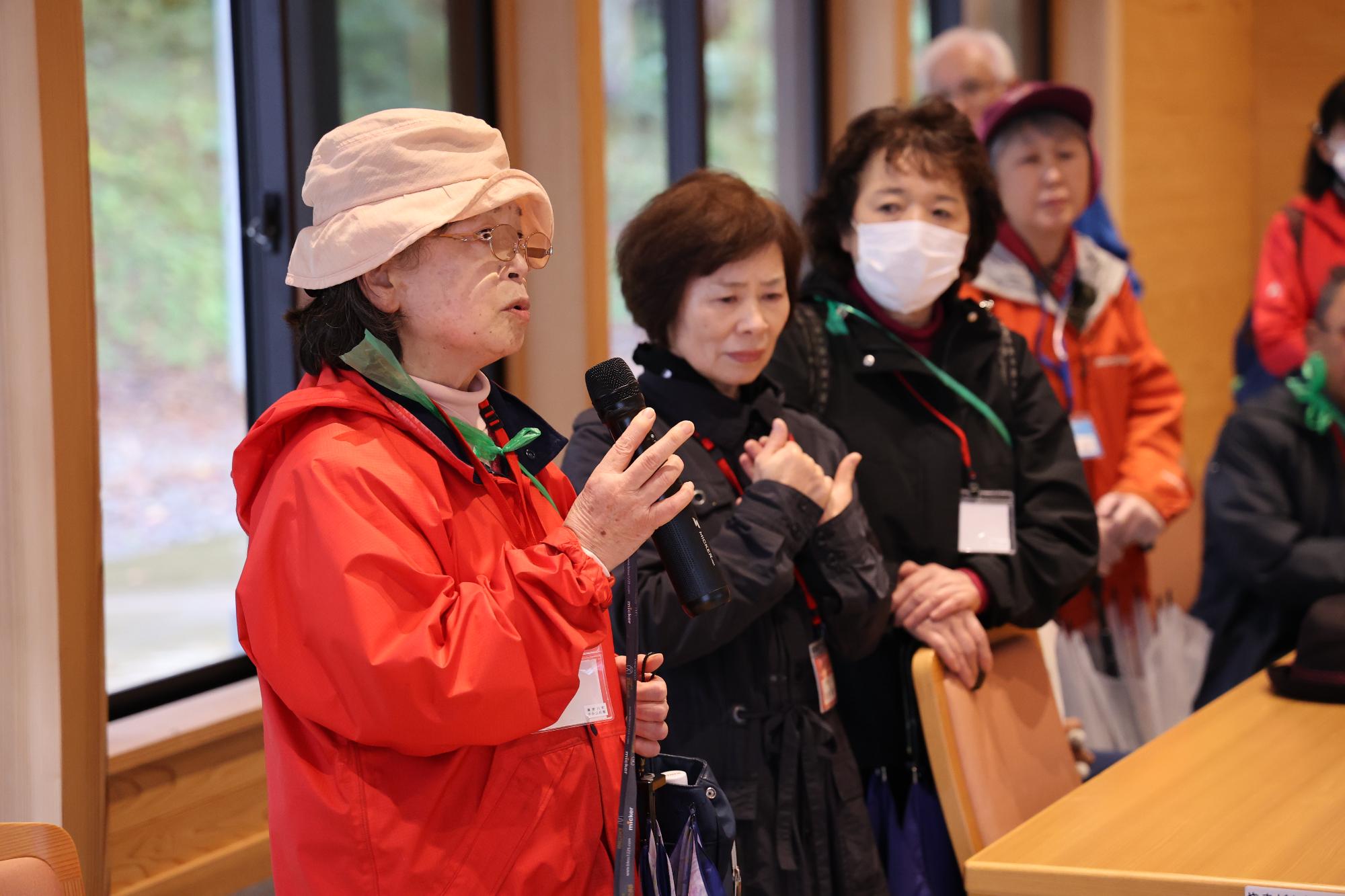 今回は参加者を代表して5名の方に感想を発表していただき、小さいころに戦争を体験した家族から聞いた話や戦争に対する思い、ツアーを通じて学んだことなどが語られました。